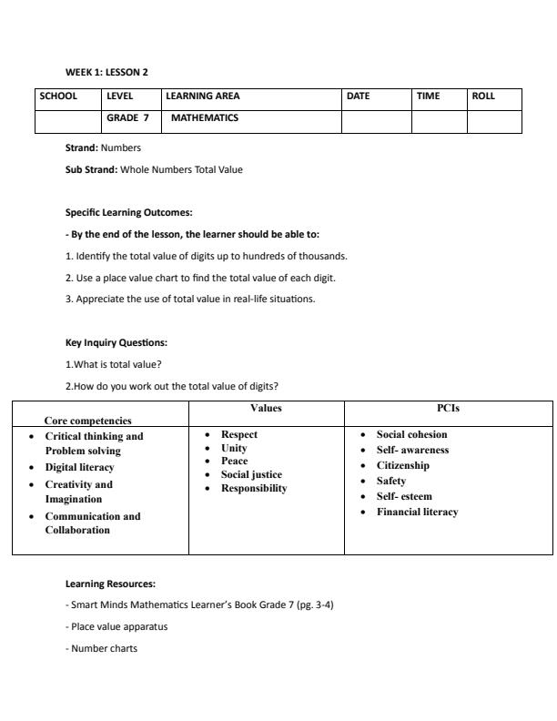 • Page 2 – Grade 7 Rationalized Mathematics Lesson Plans Term 1 – Kenyaplex