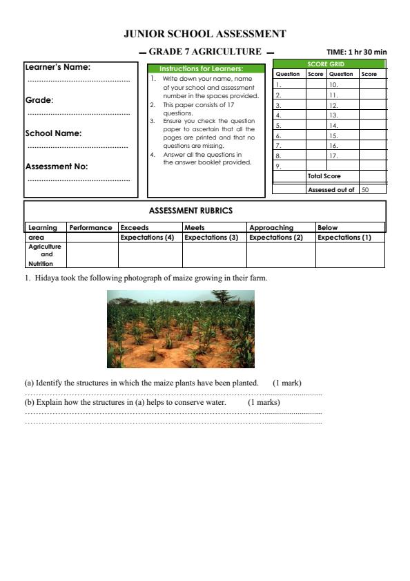 Grade 7 Agriculture and Nutrition August 2024 Holiday Assignment