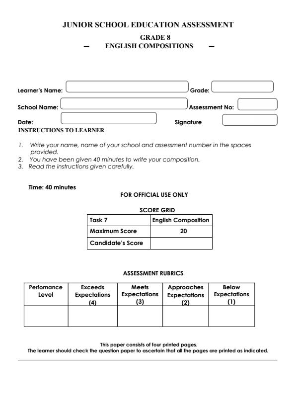 • Page 1 โ€“ Grade 8 English Composition December 2024 Holiday Assignment โ€“ Kenyaplex