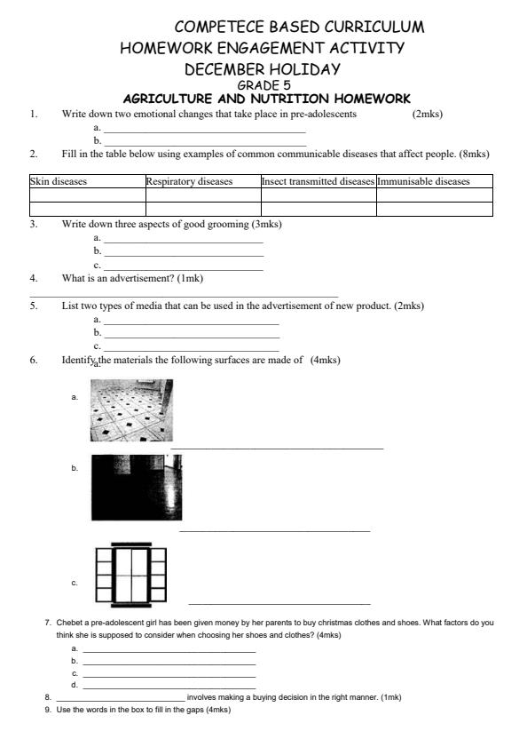 • Grade 5 Agriculture and Nutrition December 2024 Holiday Assignment