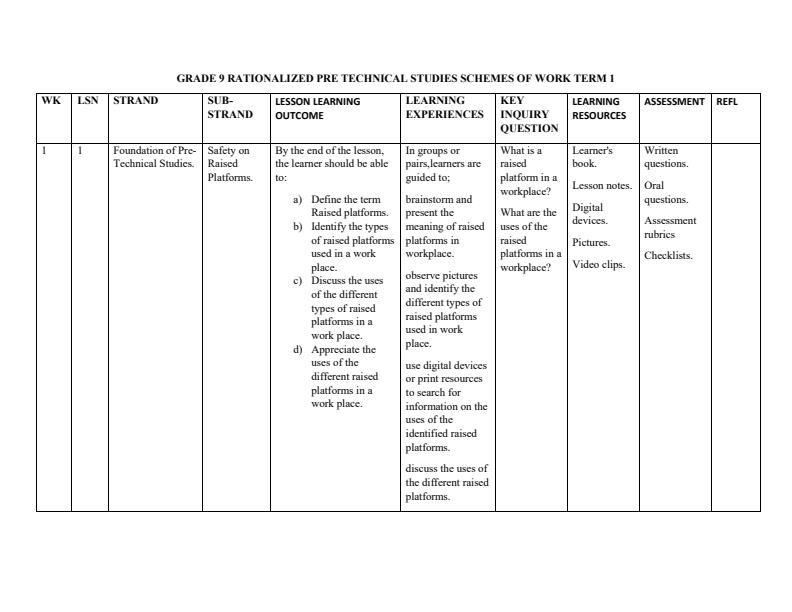 View Grade 9 Pre Technical Studies Lesson Plans Term 1