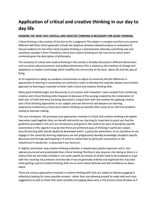 • Page 1 – Examine the view that critical thinking is necessary for good thinking – Kenyaplex