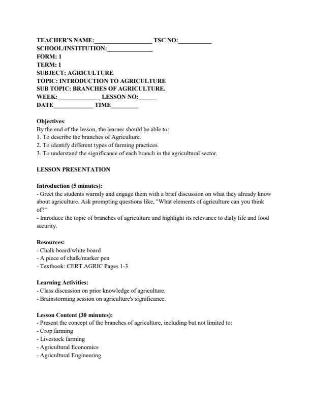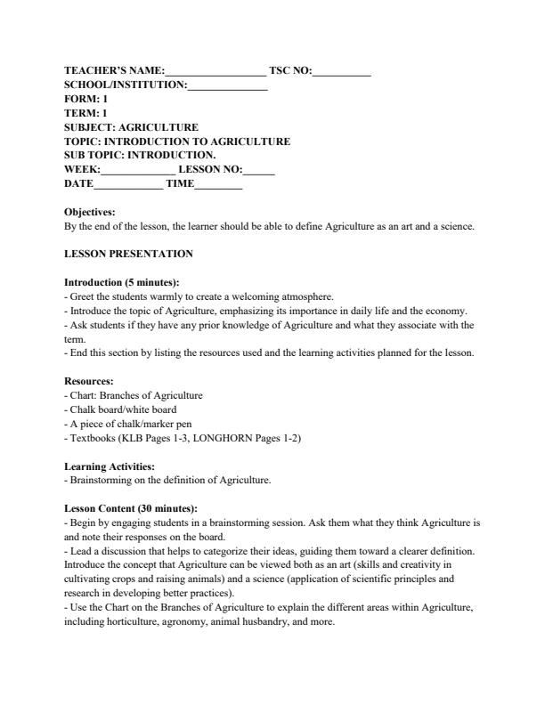 • Page 2 – Form 1 Agriculture Lesson Plans Term 1 – Kenyaplex