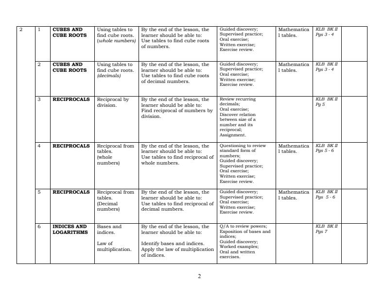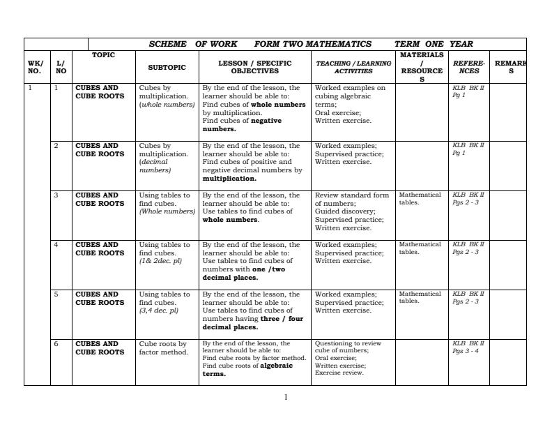 • Page 2 โ€“ Form 2 Mathematics Schemes of Work Term 1 โ€“ Kenyaplex
