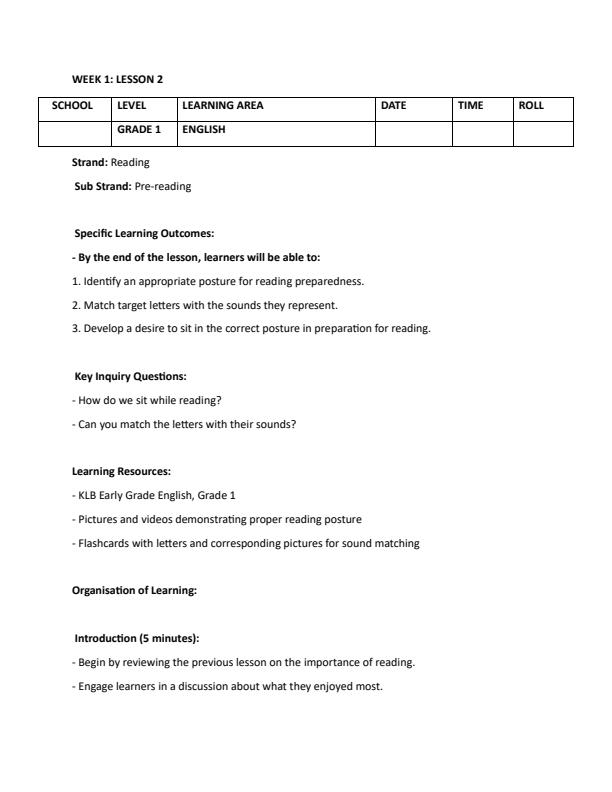 • Page 4 – Grade 1 Rationalized English Lesson Plans Term 1 – Kenyaplex