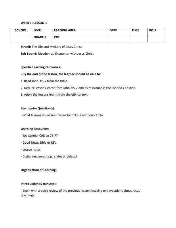 Find comprehensive grade 9 rationalized CRE lesson plans for term 1. Ideal resource for teachers seeking detailed curriculum guidance. Suitable for planning engaging and educational classroom...