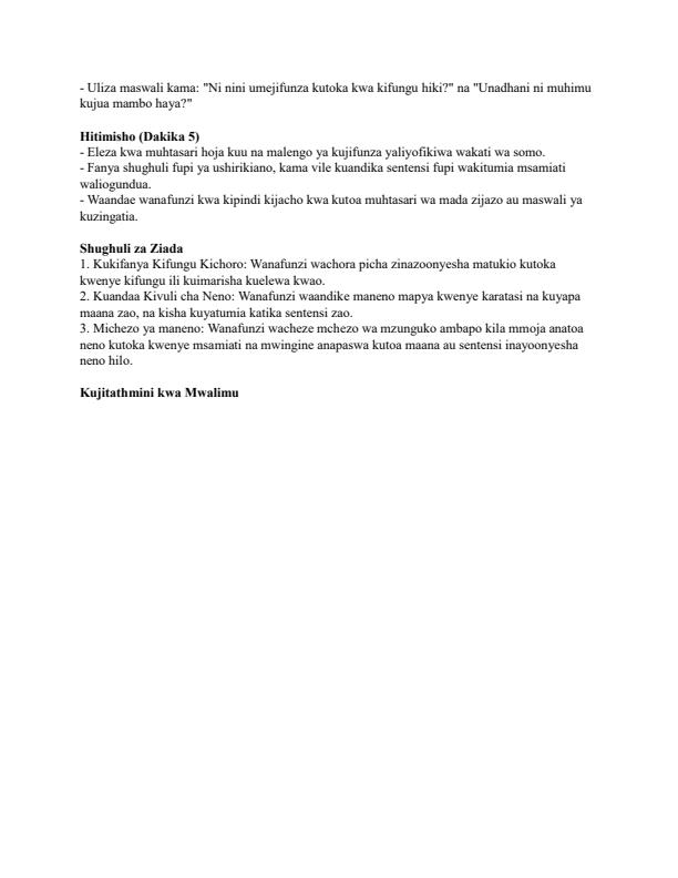 • Grade 2 Kiswahili Lesson Plans Term 3