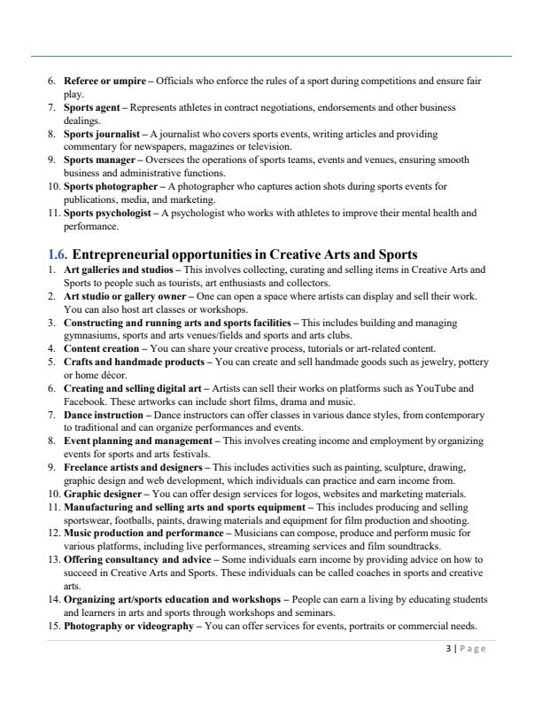 • Grade 9 Rationalized Creative Arts and Sports Notes Term 3