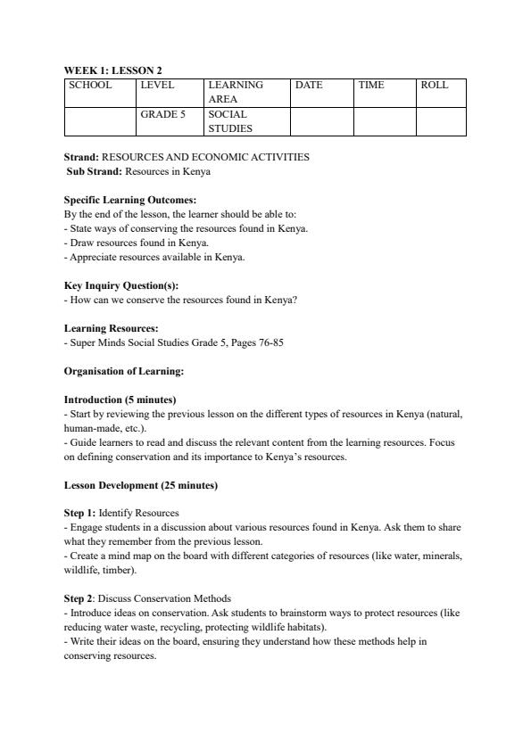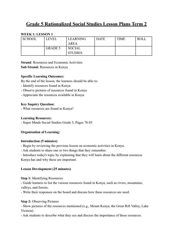 • Page 2 – Grade 5 Rationalized Social Studies Lesson Plans Term 2 - Super Minds – Kenyaplex