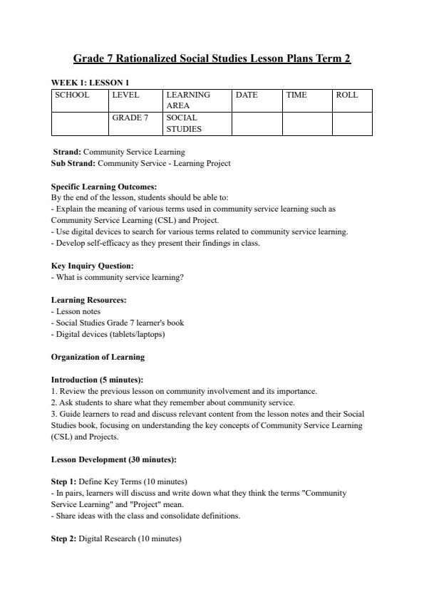 • Page 1 – Grade 7 Rationalized Social Studies Lesson Plans Term 2 – Kenyaplex