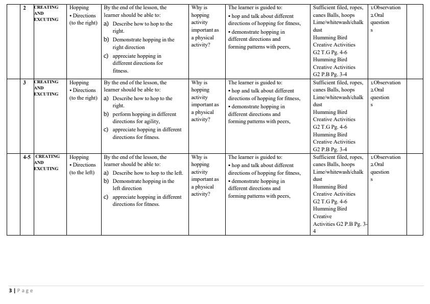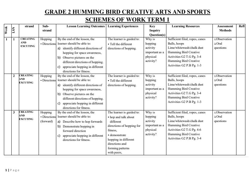 • Page 3 – Grade 2 Humming Bird Creative Arts Schemes of Work Term 1 (Rationalized) – Kenyaplex