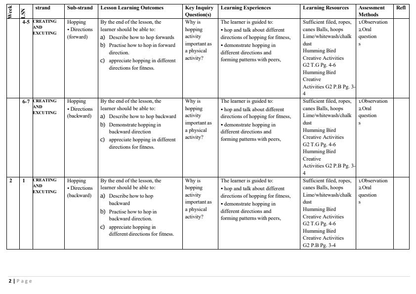 • Page 2 – Grade 2 Humming Bird Creative Arts Schemes of Work Term 1 (Rationalized) – Kenyaplex