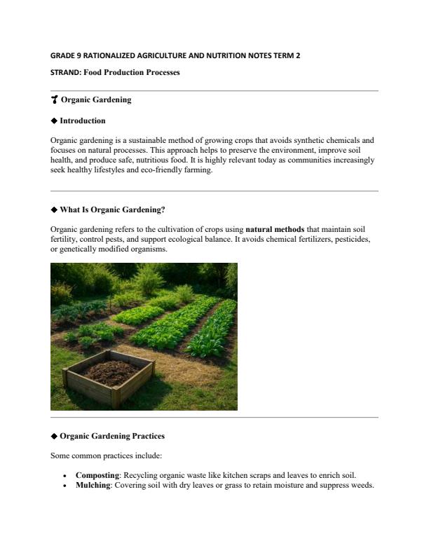 Get detailed Grade 9 Rationalized Agriculture and Nutrition notes for Term 2. Ideal for those studying Agriculture and Nutrition in their curriculum. Organic Gardening ?? Introduction Organic...