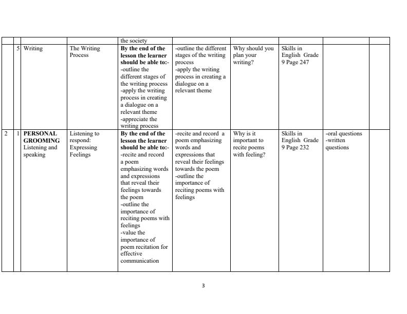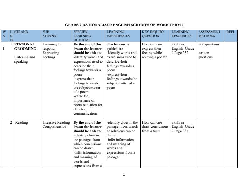 Grade 9 Rationalized English Schemes of Work for Term 1 focusing on developing essential Skills in English. Ideal resource for teachers planning their curriculum. Reference Book: - Grade 9 Skills...
