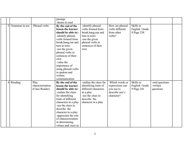View Grade 9 English Lesson Plans Term 3