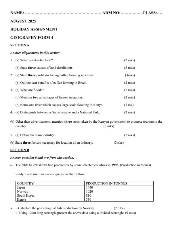 • Page 1 – Form 4 Geography August 2025 Holiday Assignment – Kenyaplex