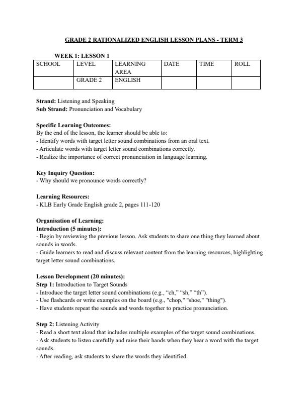 • Grade 2 Rationalized English Lesson Plans Term 3 - KLB Early Grade