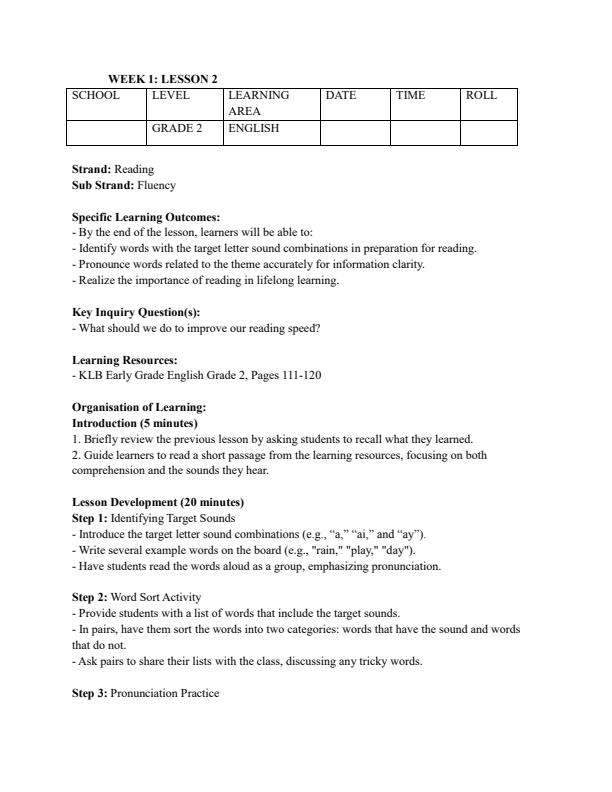 Improve your Term 3 Grade 2 English lessons with carefully crafted lesson plans designed for teachers. Engage your students and boost their learning outcomes. Reference Book: KLB Early Grade...