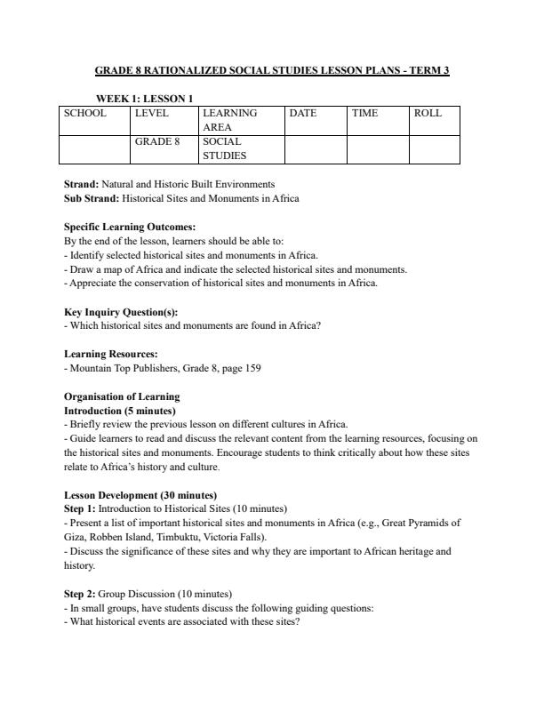 • Page 3 – Grade 8 Rationalized Social Studies Lesson Plans Term 3 - Mountain Top Publishers – Kenyaplex