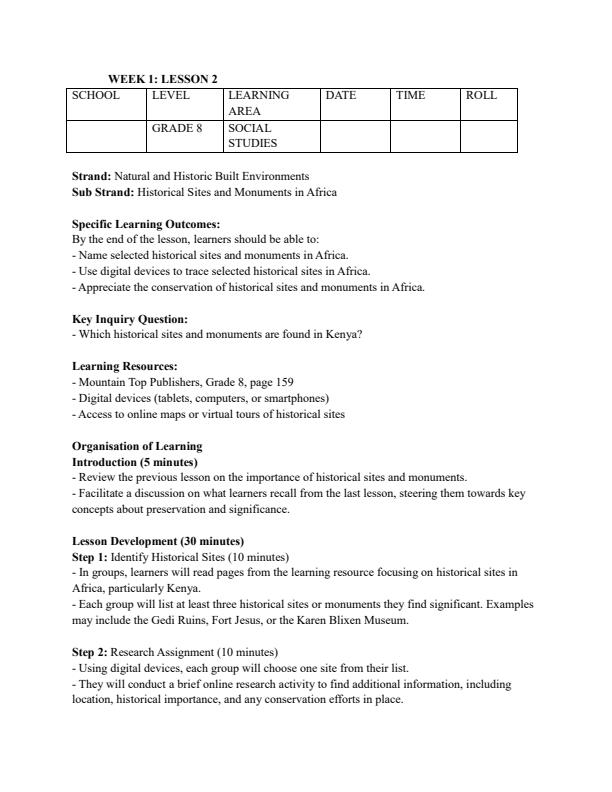 • Page 2 – Grade 8 Rationalized Social Studies Lesson Plans Term 3 - Mountain Top Publishers – Kenyaplex