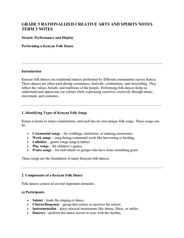 • Page 1 – Grade 5 Rationalized Creative Arts and Sports Notes Term 3 – Kenyaplex