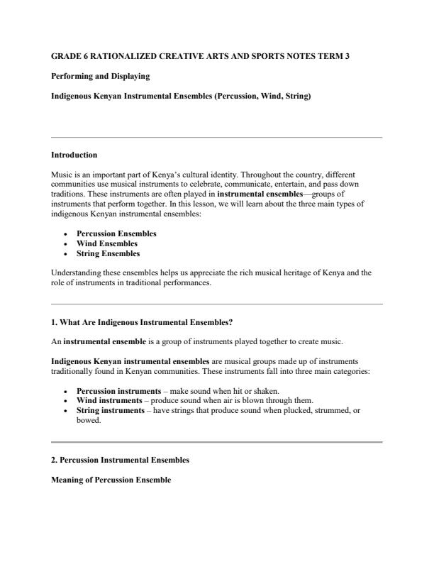 • Page 1 – Grade 6 Rationalized Creative Arts and Sports Notes Term 3 – Kenyaplex