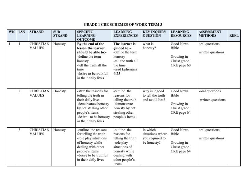 • Page 3 – Grade 1 Rationalized CRE Schemes of Work Term 3 – Kenyaplex