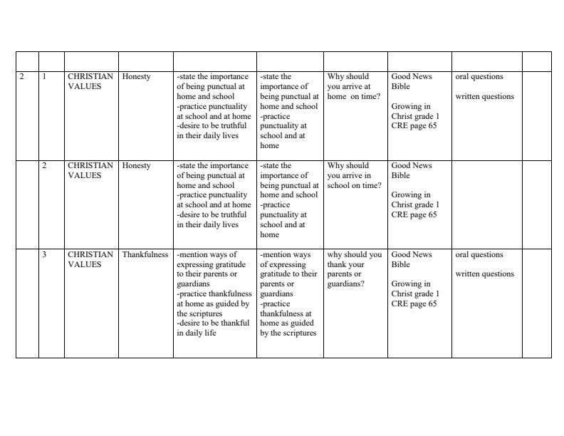 • Page 2 – Grade 1 Rationalized CRE Schemes of Work Term 3 – Kenyaplex