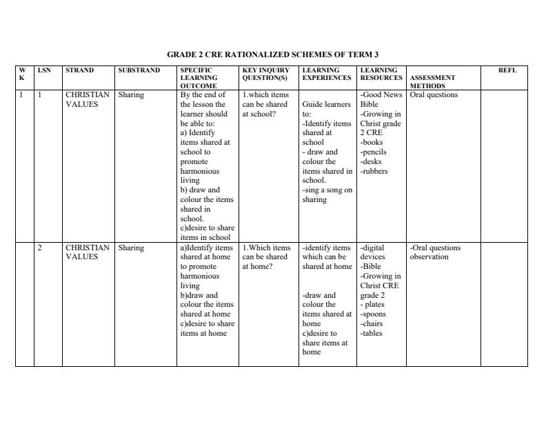 • Page 3 – Grade 2 Rationalized CRE Schemes of Work Term 3 - Growing in Christ – Kenyaplex