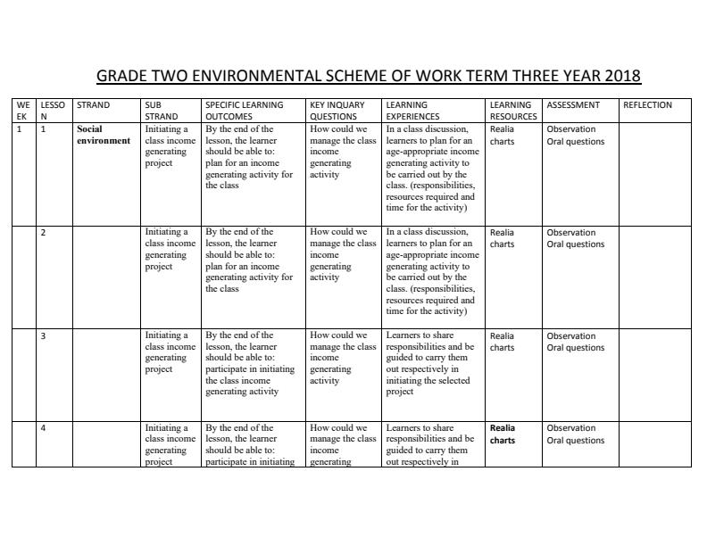 • Page 4 – Grade 2 Rationalized Environmental Activities Schemes of Work Term 3 – Kenyaplex