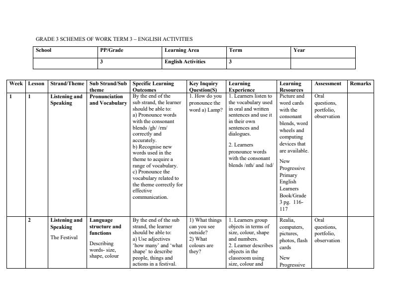 • Page 3 – Grade 3 Rationalized English Schemes of Work Term 3 - KLB Early Grade – Kenyaplex