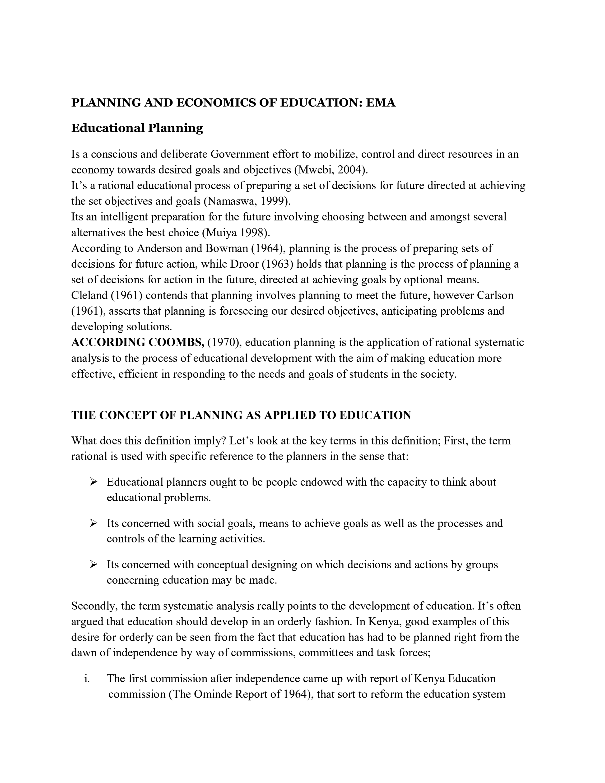 • Page 1 – EMA 412: Economics and Planning of Education Notes 4th year – Kenyaplex