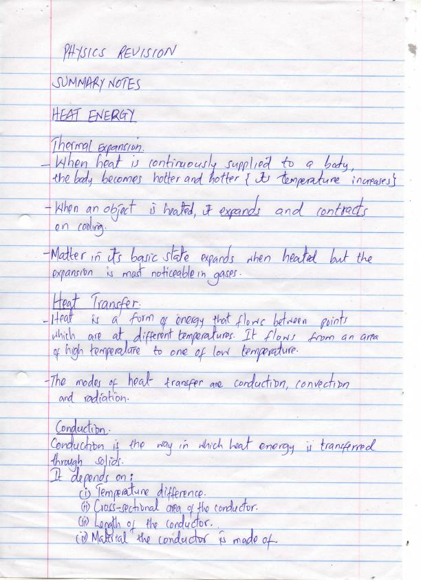 A clear summary of heat energy topic taught in high school. Heat Energy Notes.