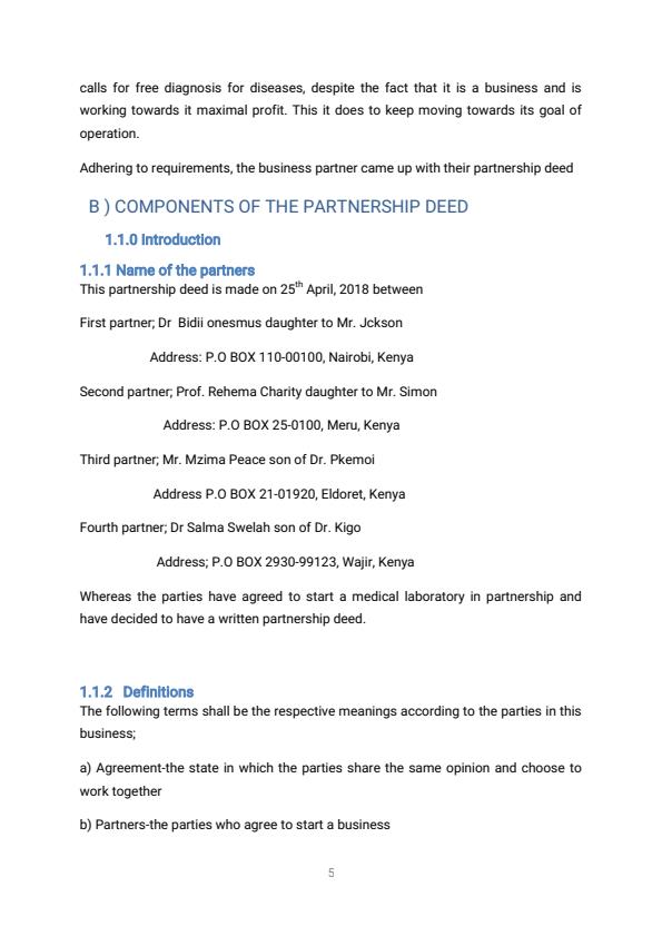 • Page 1 – Develop an ideal partnership deed for a private medical laboratory – Kenyaplex
