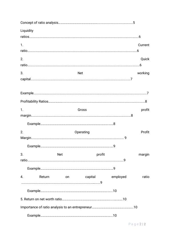 • Page 2 – Describe using illustrations, the profitability and liquidity ratios that should be consider when developing a business plan and highlight significance of each to an entrepreneur – Kenyaplex