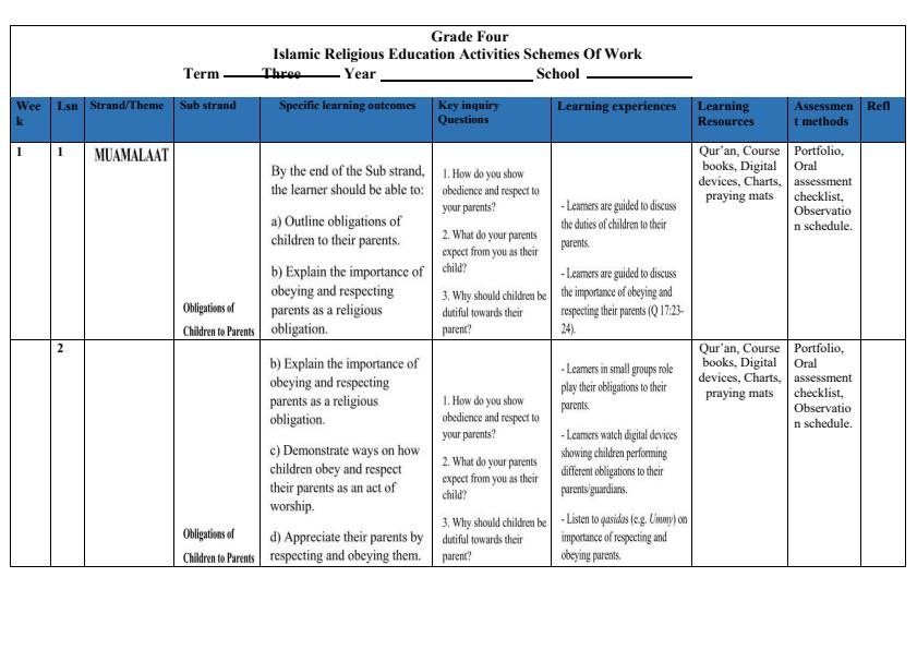 • Page 2 โ€“ 2024 Grade 4 Islamic Religious Education Scheme of Work Term 3 โ€“ Kenyaplex