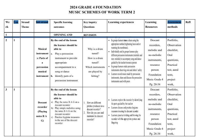 • Page 3 – Grade 4 Rationalized Creative Arts Schemes of Work Term 2 – Kenyaplex