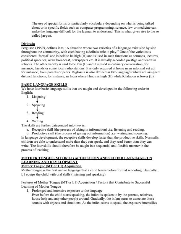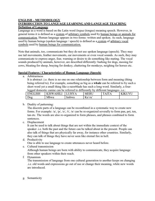 English Methodology Notes for Primary Teacher Education (PTE). These notes may be used by student teacher in revision.. Brief Overview: Definition of Language Language as a word is based on the...