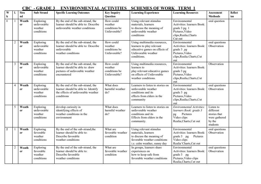 • Page 1 – Grade 3 Rationalized Environmental Activities Schemes of Work Term 1 - Our Lives Today – Kenyaplex