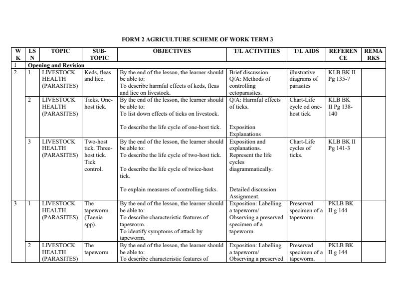 • Page 2 – Form 2 Agriculture Schemes of Work Term 3 – Kenyaplex