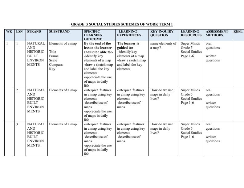 2024 Grade 5 Social Studies Activities Schemes of Work Term 1- Super mind