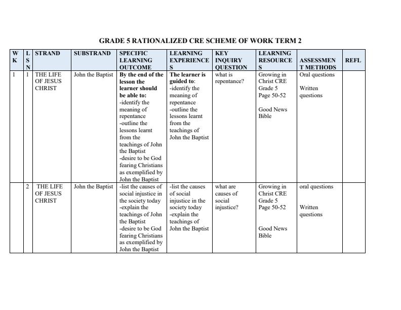 Enhance Grade 5 Christian Religious Education with Term 2 CRE Activities. Easily access the Schemes of Work for instant download via WhatsApp, email, or direct download. Fully editable...