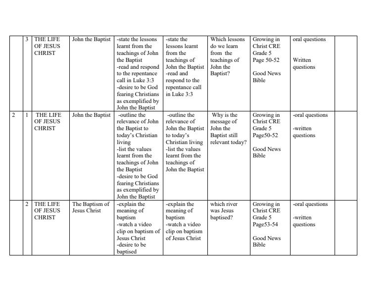 View Grade 5 CRE Lesson Plans Term 2