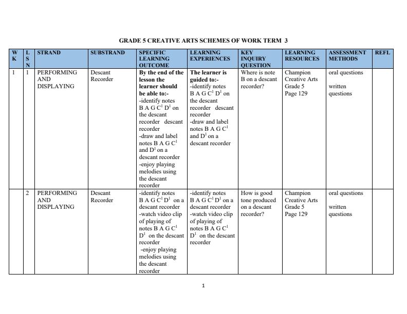 Enhance your Grade 5 Creative Arts curriculum with the Rationalized Schemes of Work for Term 1. Streamline your teaching process and maximize student engagement with our specialized resources designed...