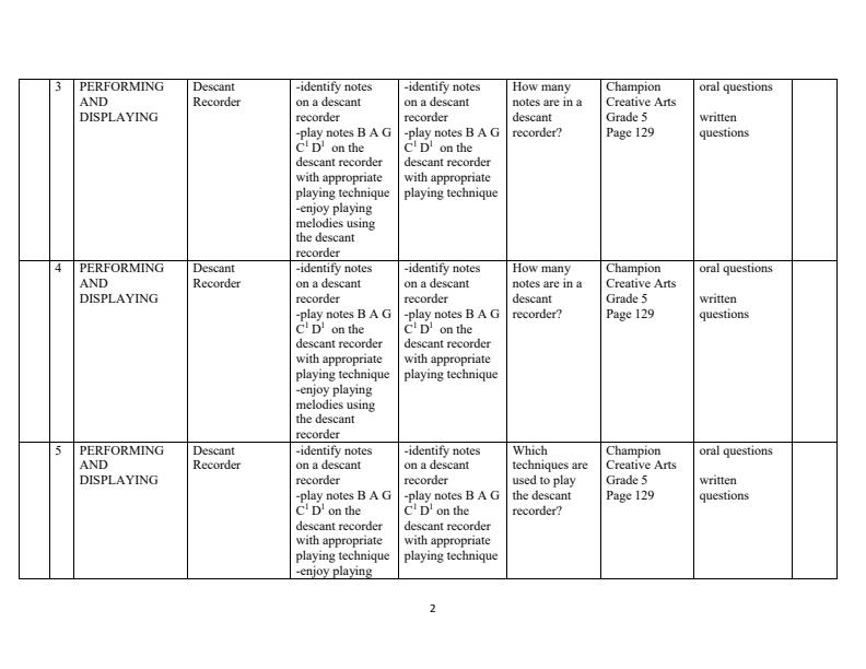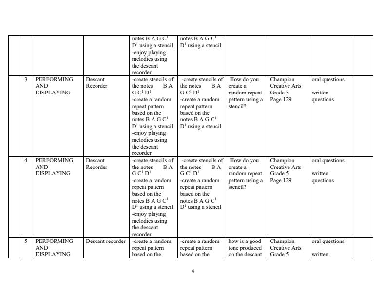 View Grade 5 Creative Arts Lesson Plans Term 3