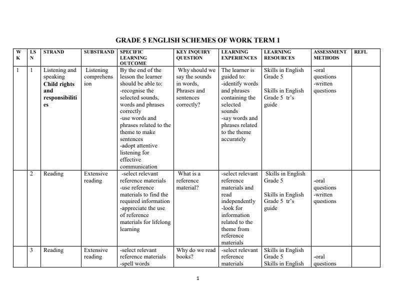 Content Category: grade 5 schemes of work